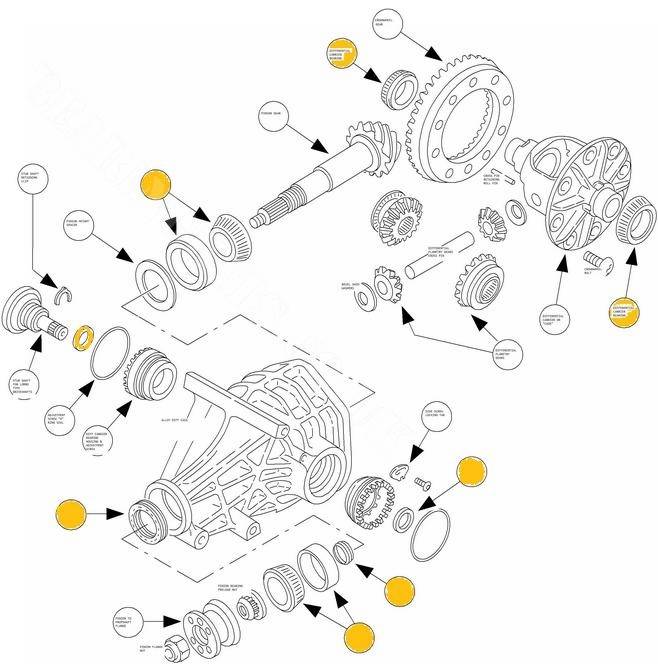 2 x Timken Pinion bearings2 x Timken Differential carrier bearings1 x Pinion oil seal2 x Driveshaft oil seals1 x Original Ford Crush spacer for preload2 x Side 'O" rings