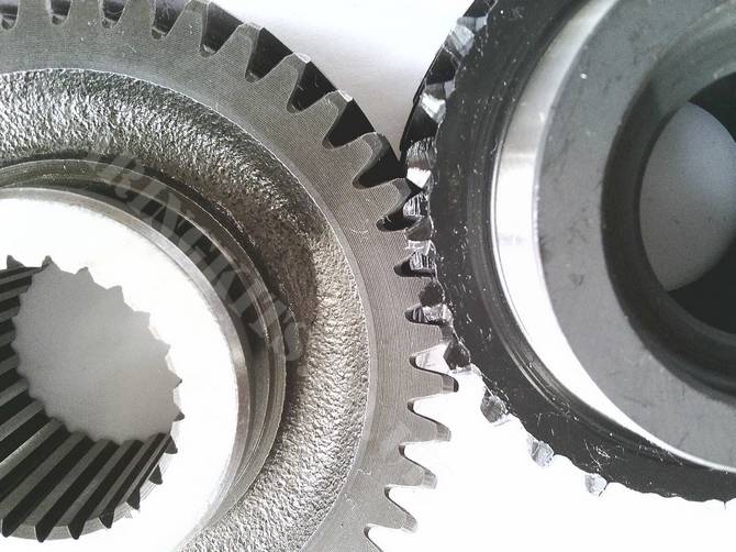 The spline gear has 45 teeth and the gear with synchro ring has 34 teeth.